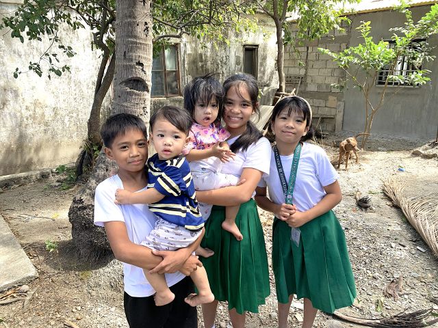 慰霊式を行っていると近くの子供達が集まってきて興味深く見つめていた。弟妹の世話を良くみていた。
