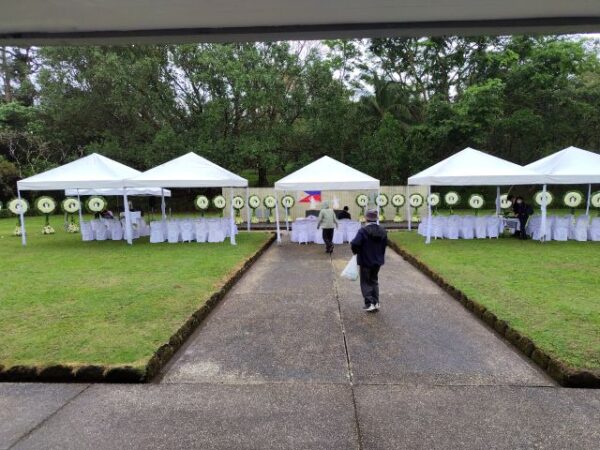 ―戦没者の遺骨については約15万人分は日本へ返還されるも身元特定できないため千鳥ヶ淵墓苑に合葬されているが未だ37万人分は行方不明で比国周辺の海岸線やジャングル内に残されているとの事です。遺骨を送られた遺族はだれも居らず式終了後に付近の小石を2~3個拾い日本へ持ち帰っていました。土壌は検疫で持ち帰り不可だが小石はOKと他の遺族の方が教えていました。