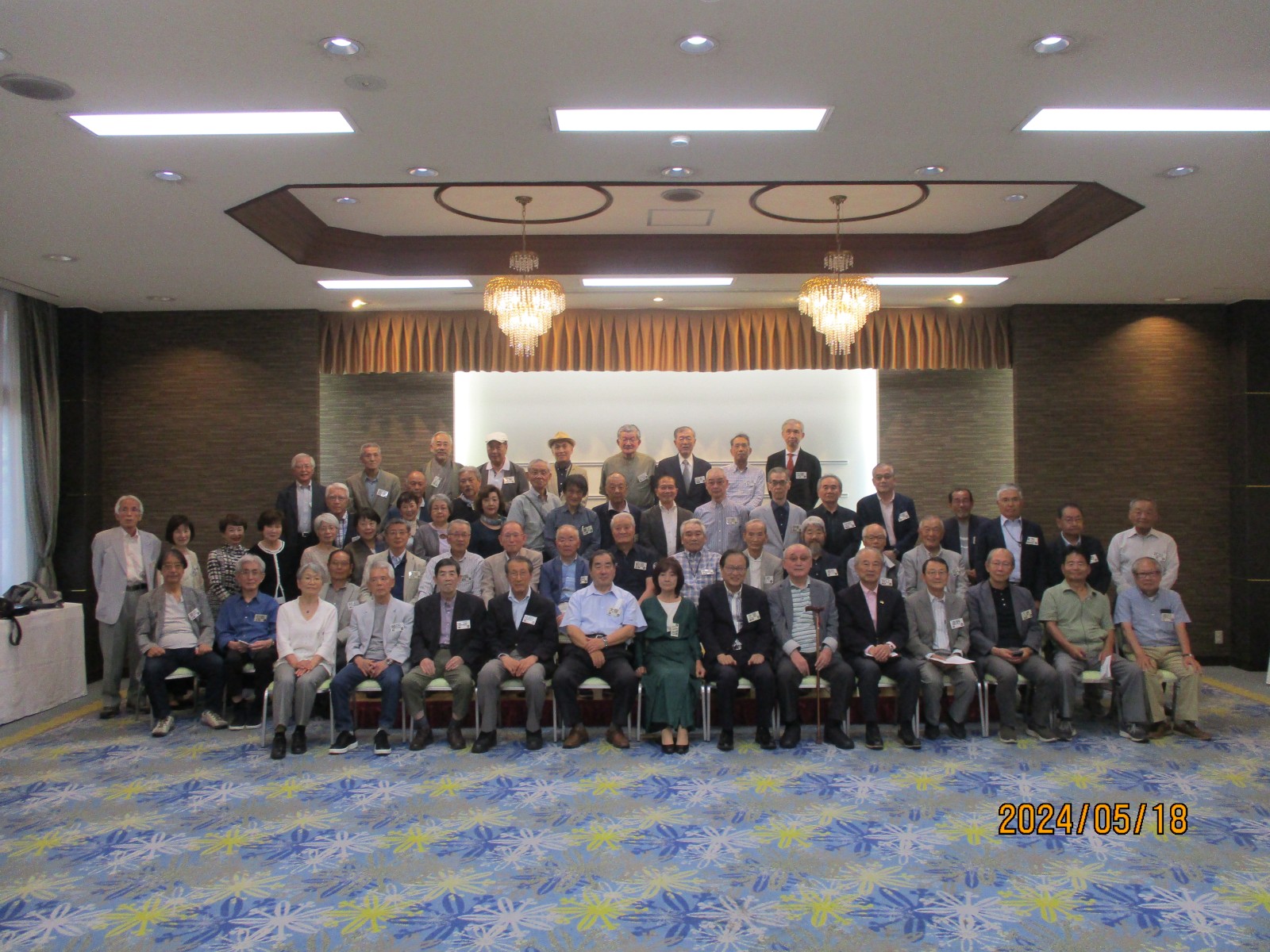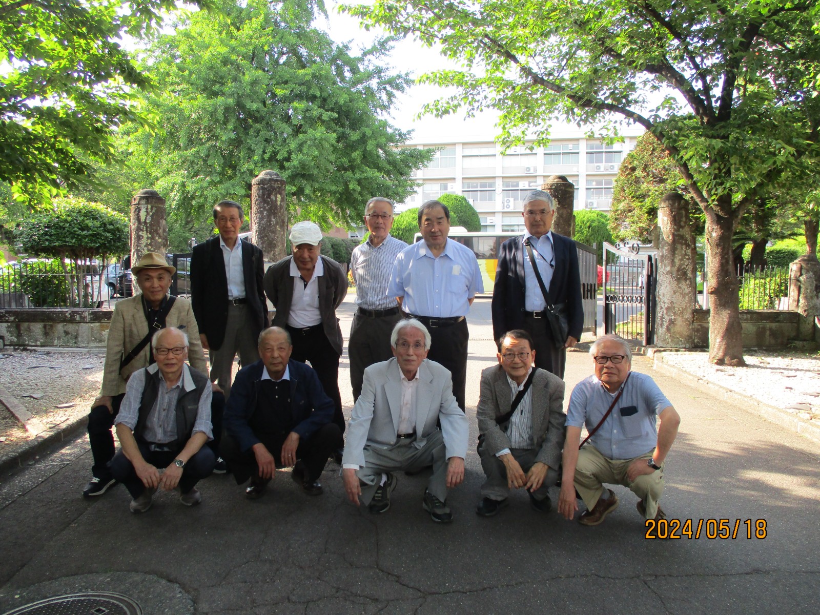 「熊高42会総会・喜寿を祝う会」を5月18名、女性11名を含む68名が参加しました。会に先立って、12名で母校見学をしました。教室内には入れませんでしたが、卒業20周年の時に植えた楠木を見ましたが、相当大きく立派になっていました。「総会」では、司会の米村勲君(5室)の進行で去年の5月以降亡くなった4名と合計85名のご冥福を祈って黙祷をしました。佐伯眞知子会長(7室)のあいさつ、辰巳事務局(9室)の会計報告、小串信夫君(1室)の会計監査があり無事終了しました。