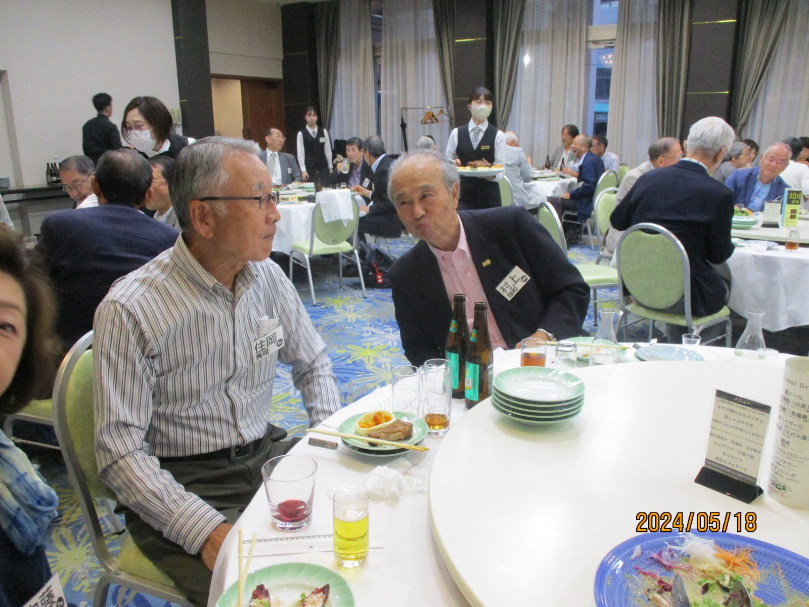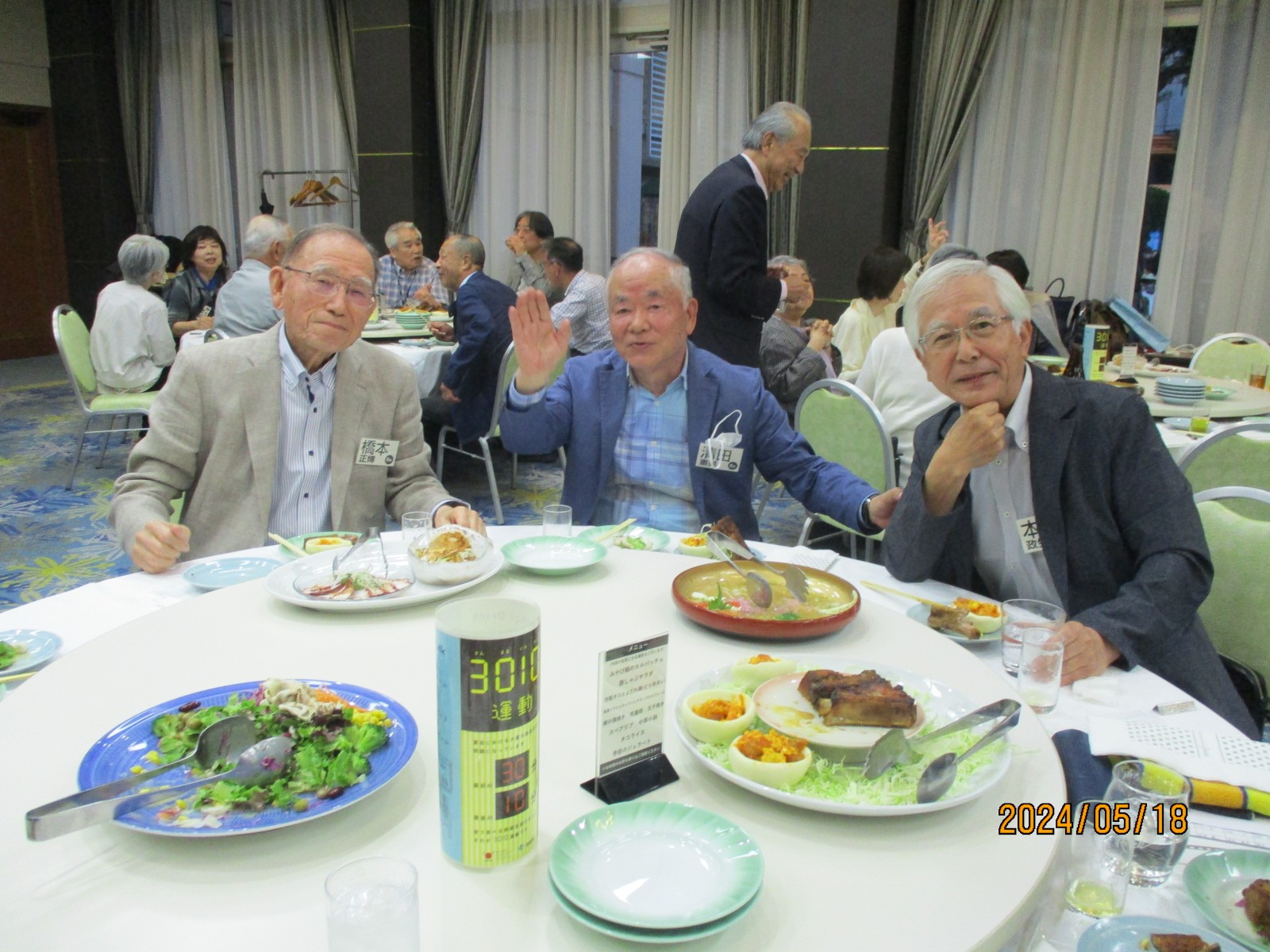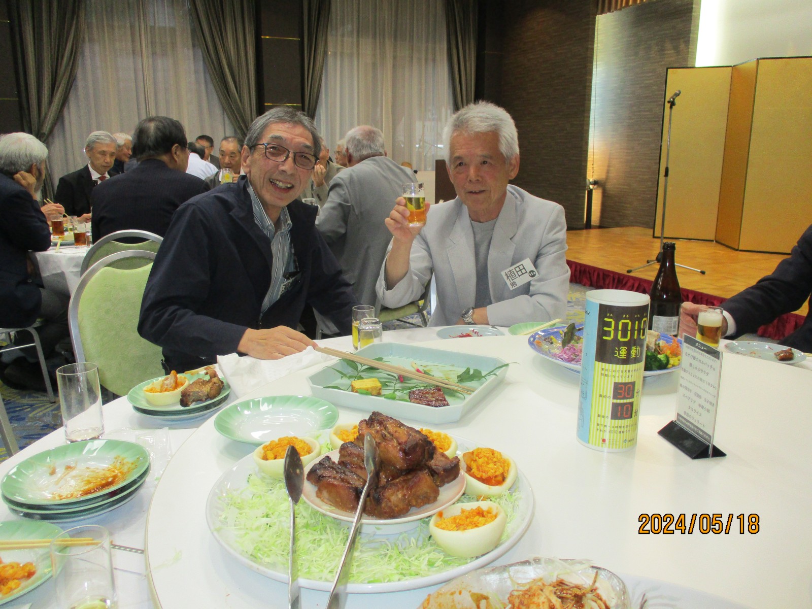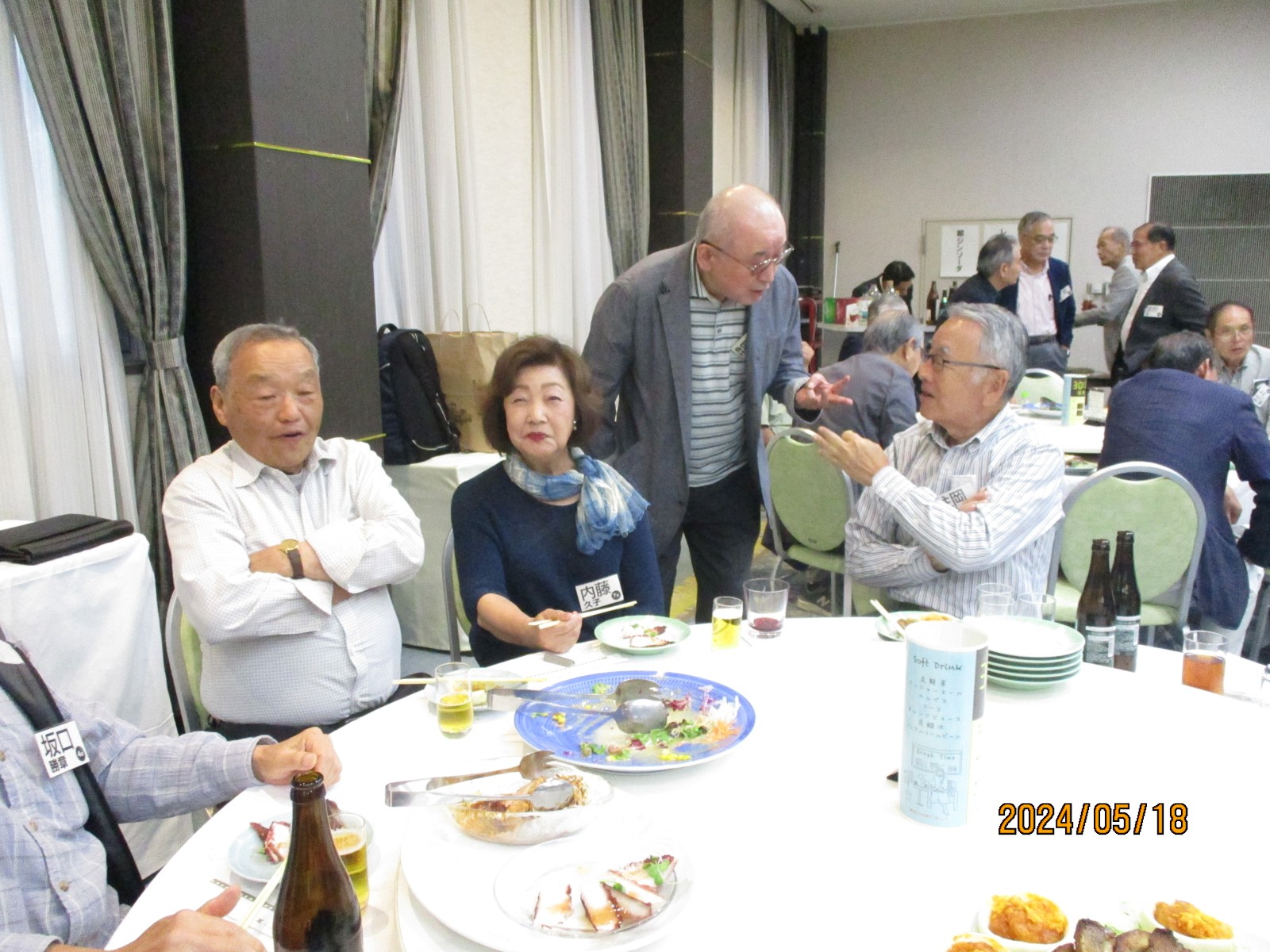 「喜寿を祝う会」が始まりました。開会では北里敏明副会長(10室)がちょっと長めのあいさつをし、大塚副会長が高らかに乾杯の音頭を取り宴がはじょまりました。久ぶりに会った友との話があちこちで弾みました。暫くの歓談の後、初参加者、久しぶりの参加者のスピーチがありましたが、ワイワイガヤガヤで話がよく聞き取れませんでした。その後、志柿学副会長のリードで第2応援歌、校歌斉唱を全員で大きな声で歌いました。故廣島正君(10室)の後任の百井正治君(8室)が”げんこつ„の音頭を取り全員で「げんこつ、げんこつ、げんげんこつこつ」と何度も両腕を突き上げました。最後は吉本和子副会長(4室)が閉会で「また来年もお会いしましょう。」と締めくくって終わりました。事務局・辰巳(写真をクリックすると大きくなります)