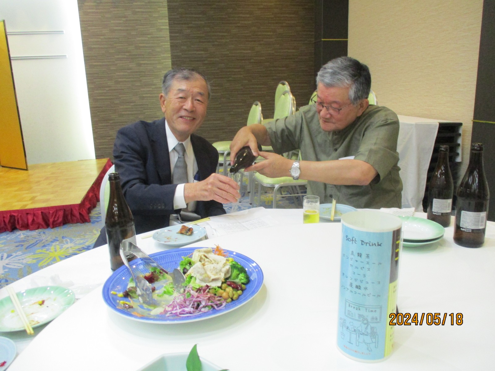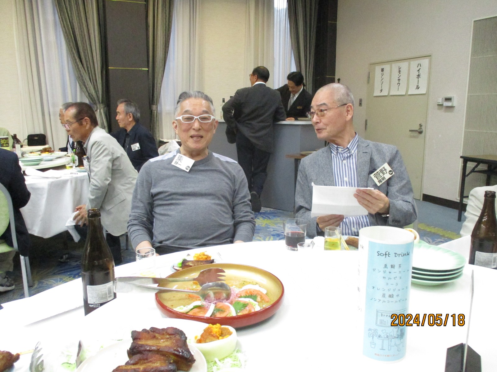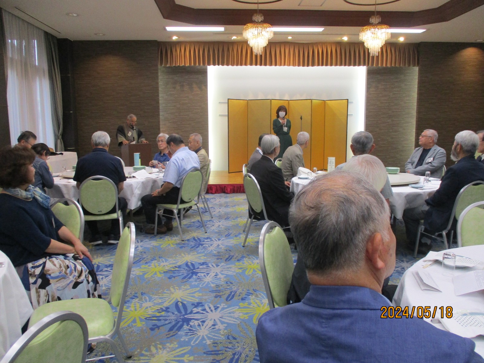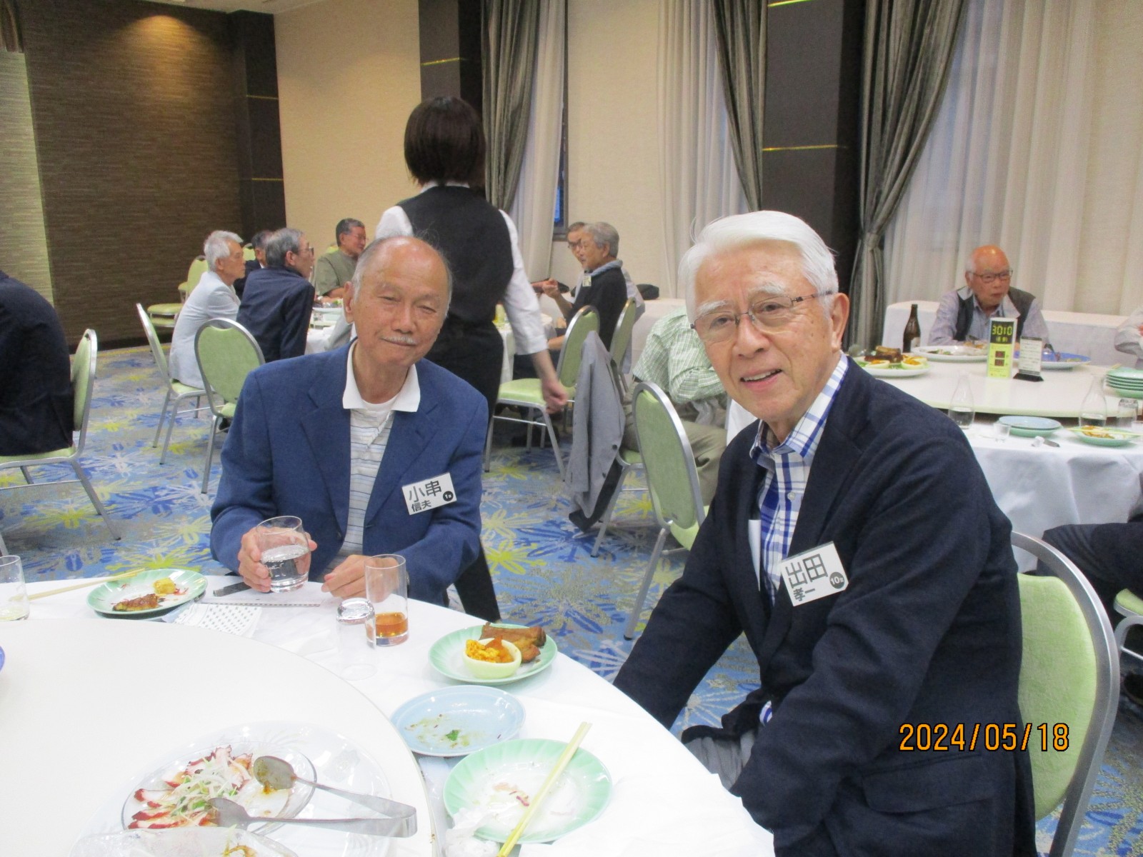 「喜寿を祝う会」が始まりました。開会では北里敏明副会長(10室)がちょっと長めのあいさつをし、大塚副会長が高らかに乾杯の音頭を取り宴がはじょまりました。久ぶりに会った友との話があちこちで弾みました。暫くの歓談の後、初参加者、久しぶりの参加者のスピーチがありましたが、ワイワイガヤガヤで話がよく聞き取れませんでした。その後、志柿学副会長のリードで第2応援歌、校歌斉唱を全員で大きな声で歌いました。故廣島正君(10室)の後任の百井正治君(8室)が”げんこつ„の音頭を取り全員で「げんこつ、げんこつ、げんげんこつこつ」と何度も両腕を突き上げました。最後は吉本和子副会長(4室)が閉会で「また来年もお会いしましょう。」と締めくくって終わりました。事務局・辰巳(写真をクリックすると大きくなります)